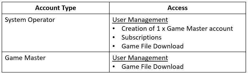 - You have a VTKD portal System Operator account to set up a Game Master account and to download the VTKD application.