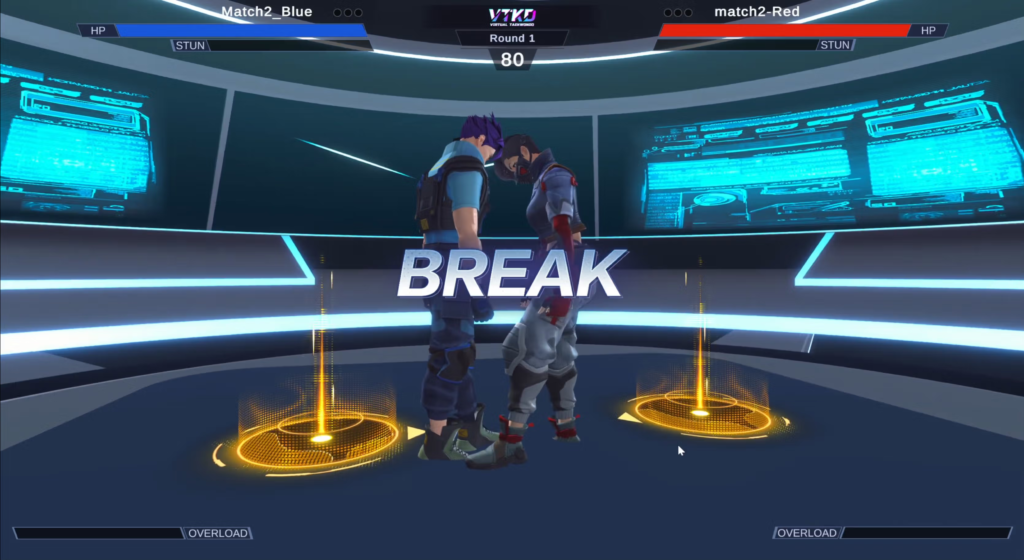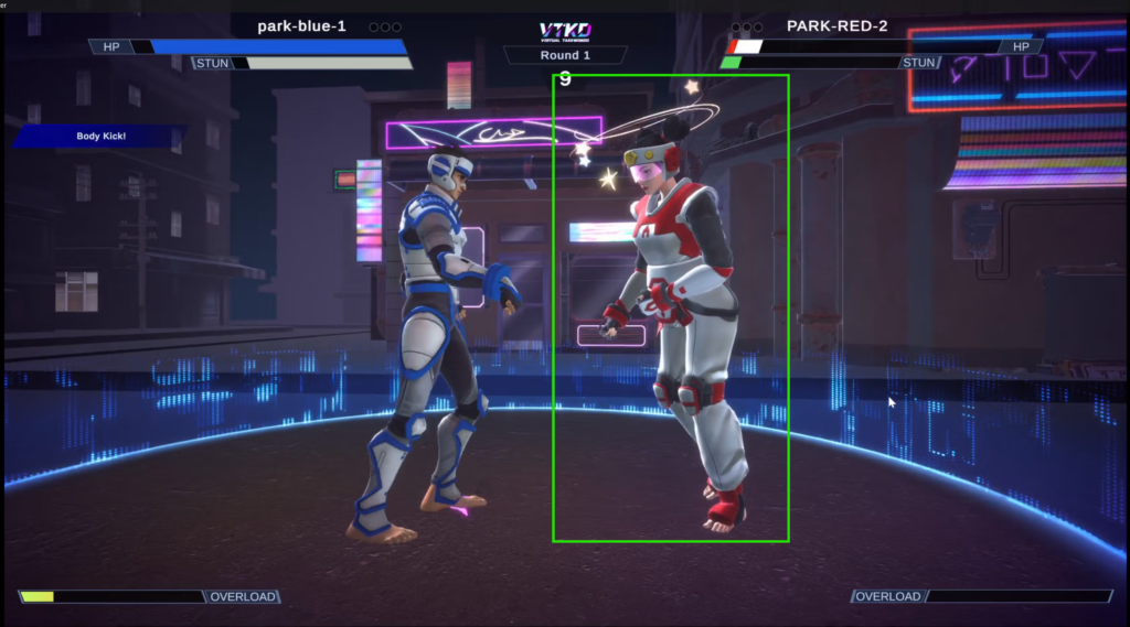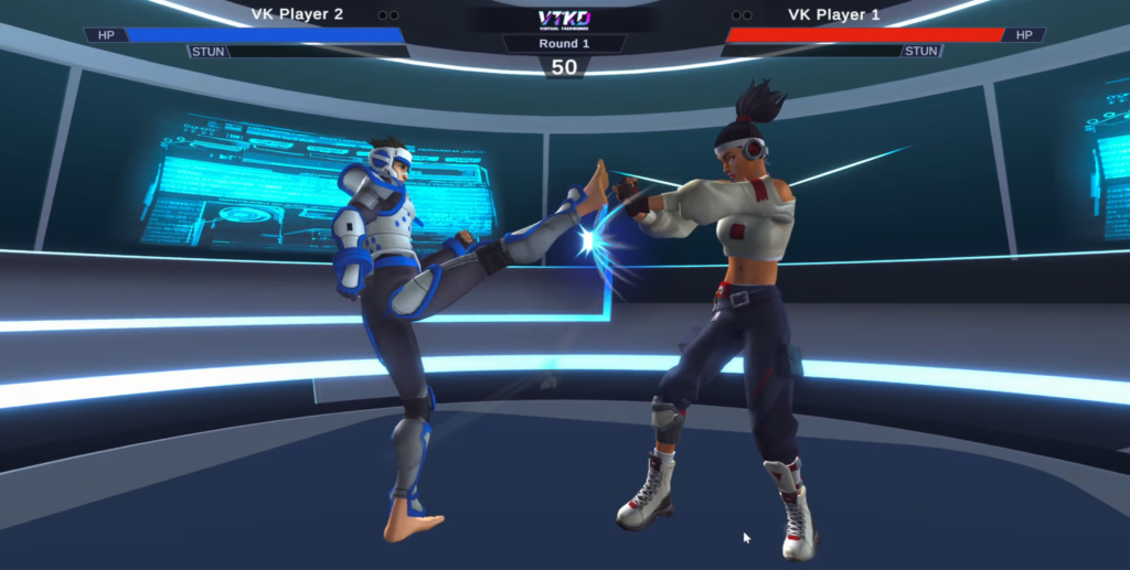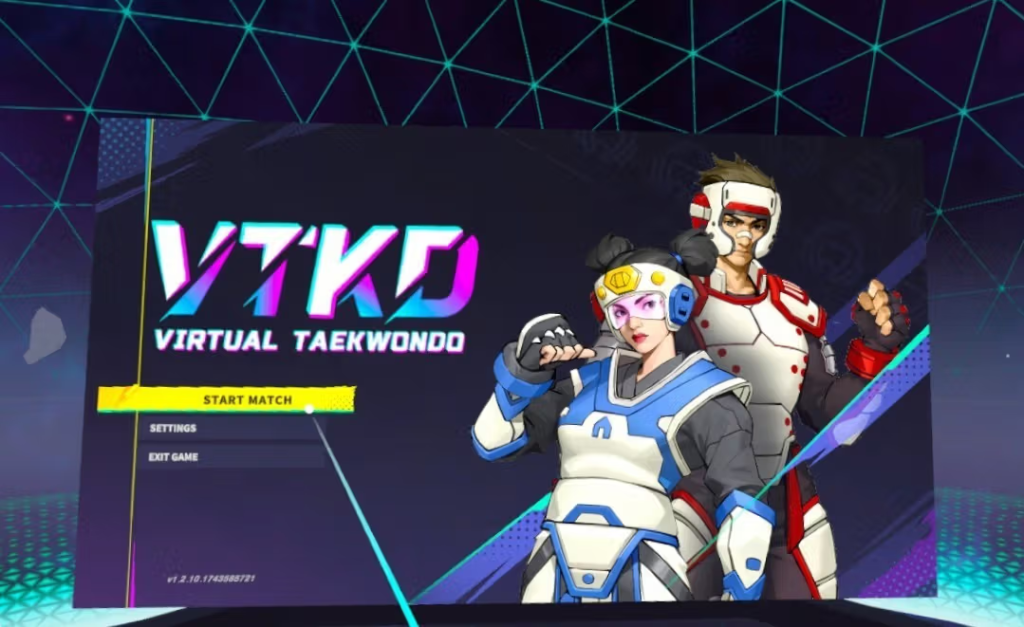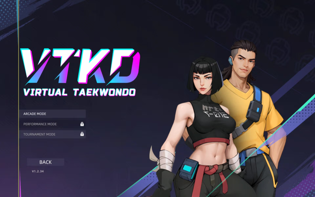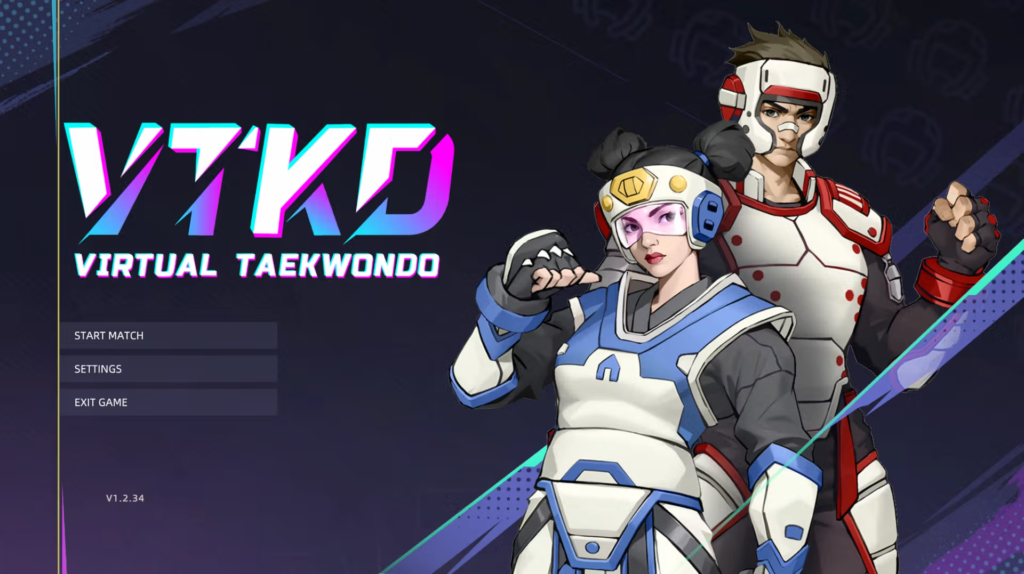 VTKD is a non-contact virtual sport game designed to simulate Taekwondo in a digital format. Players use a VR headset and AXIS motion tracking technology, allowing their physical movements to control their in-game avatars. The gameplay is similar to traditional fighting games like Street Fighter or Tekken, where rounds are won by knocking out the opponent or having a higher amount of health.