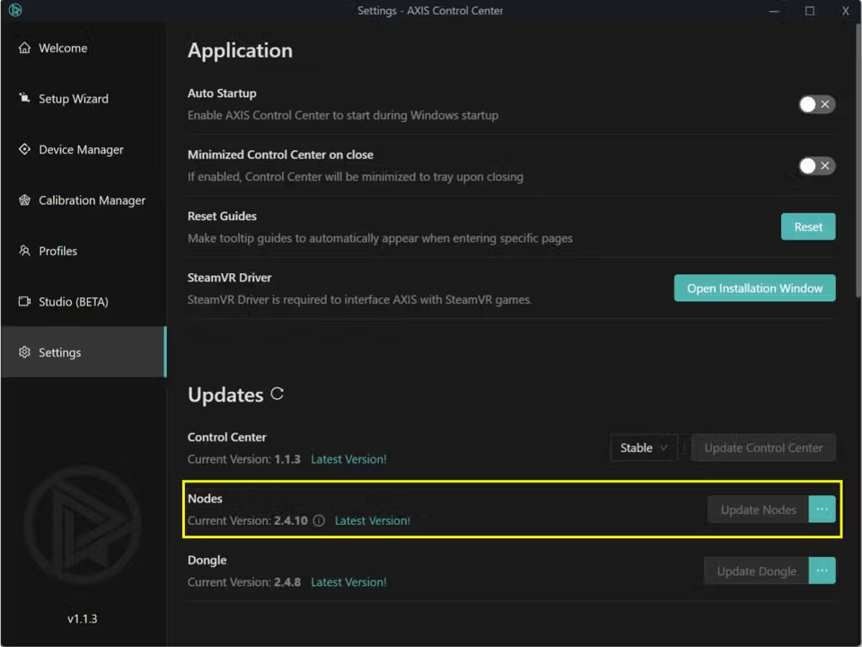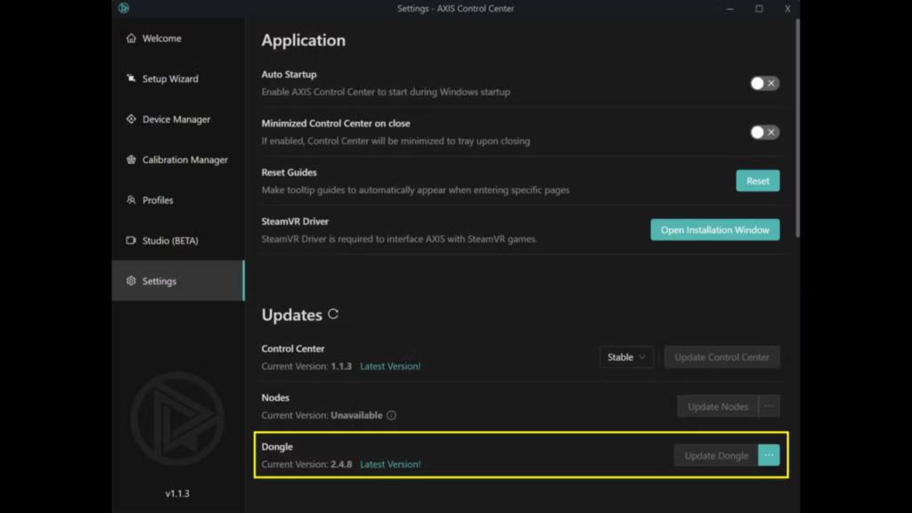 - Make sure the AXIS receiver (dongle) is connected to the VR headset.