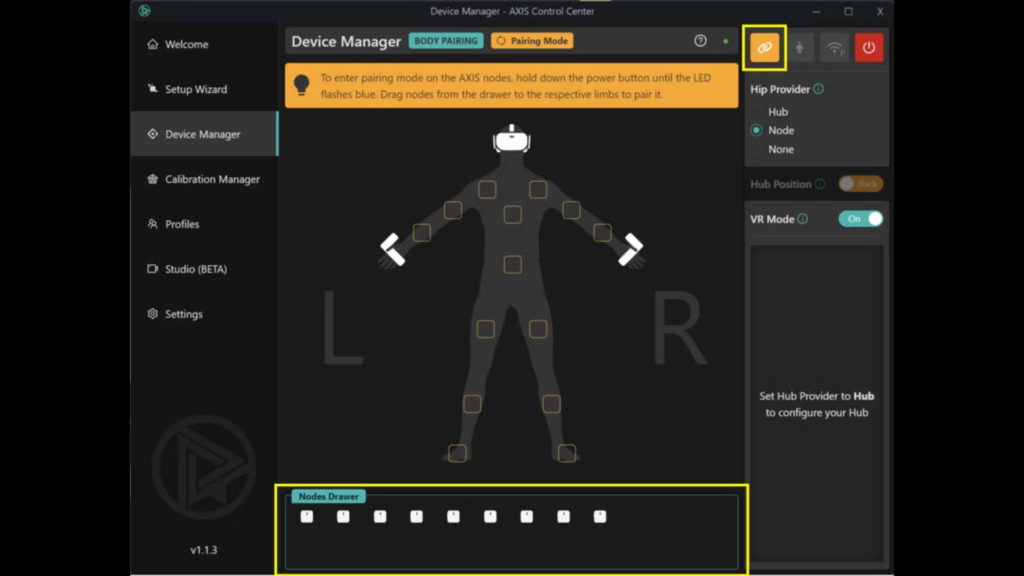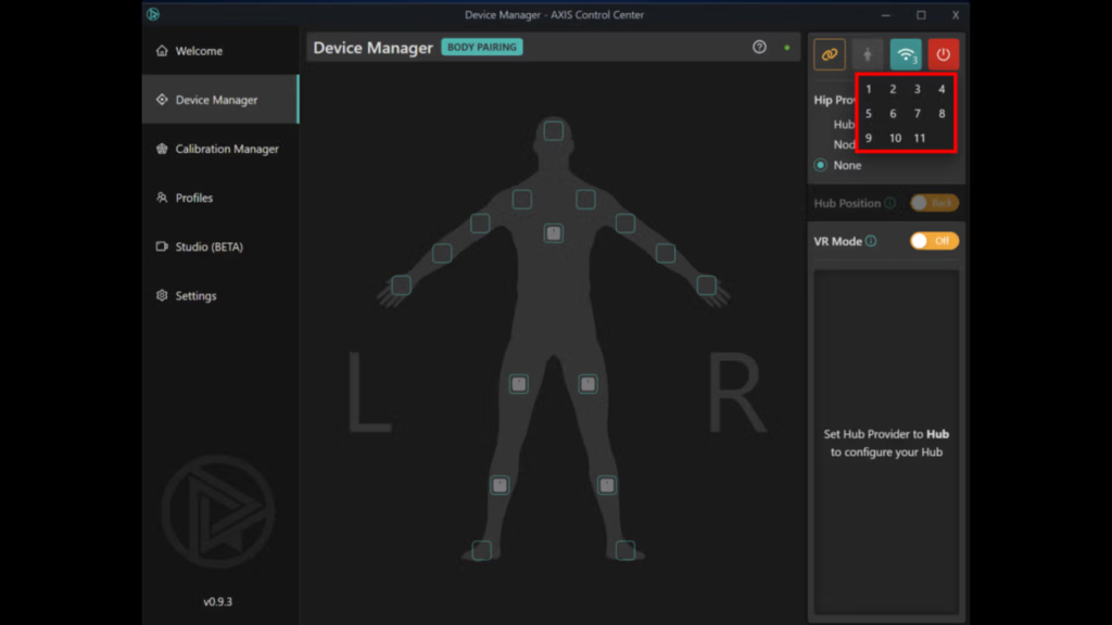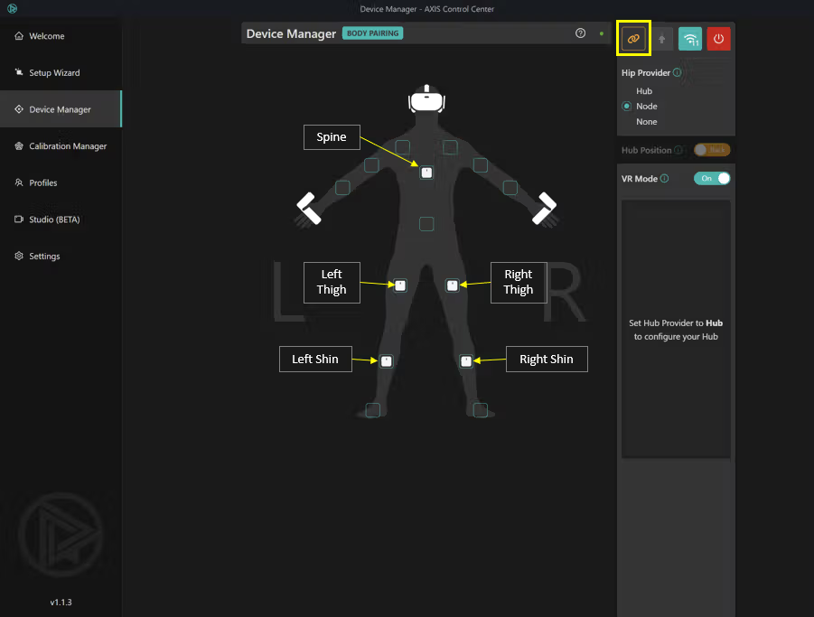 - Ensure your 5 motion trackers for VTKD are paired in the right position in the ‘Device Manager’ tab.