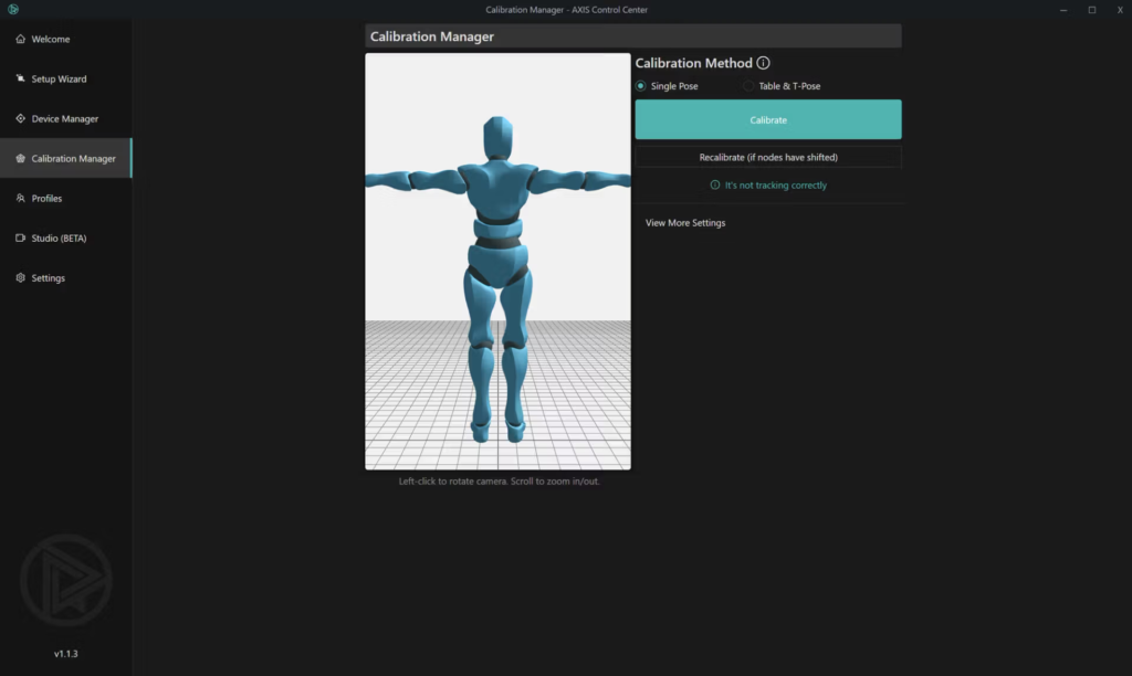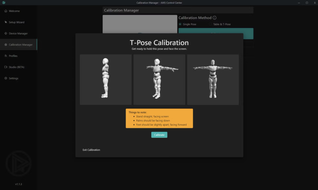 - Click on ‘Calibrate’ in the ‘T-Pose Calibration’ pop-up.