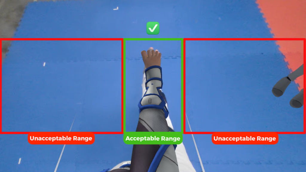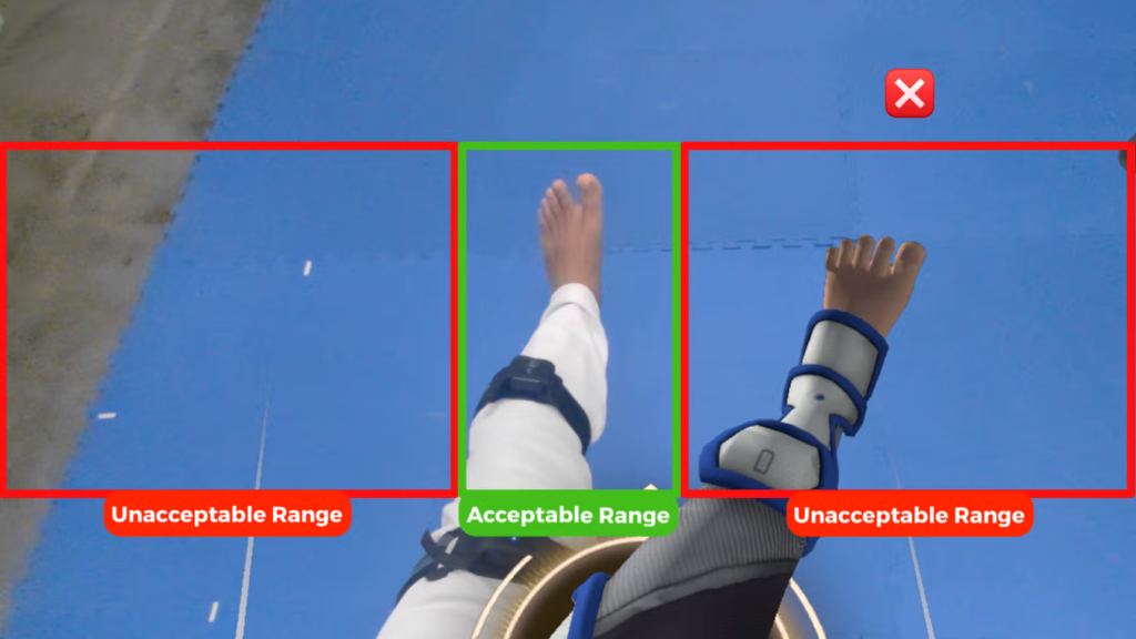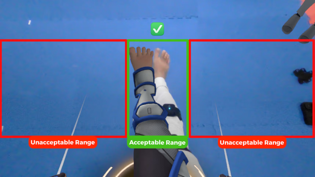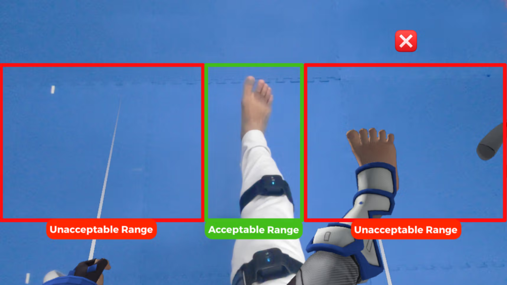 Note: The offset between the avatar legs (in VR) and their physical legs should be no more than 1 foot inward or outward. Any alignment with an offset greater than 1 foot should be treated as unacceptable.