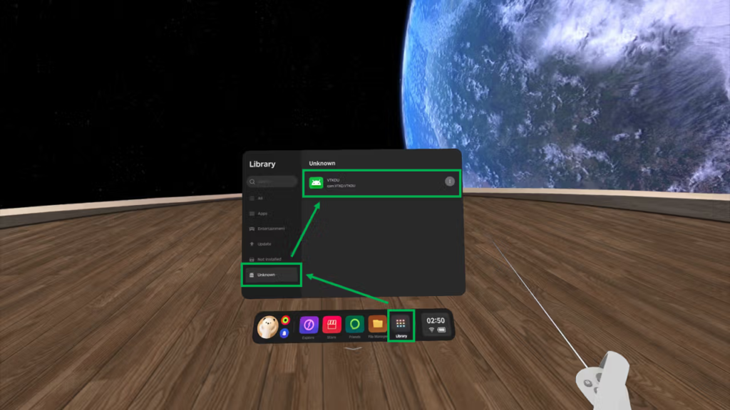 2. Once the WiFi is connected to the correct network, go to ‘Library’ -> ‘Unknown’ -> ‘VTKDU’