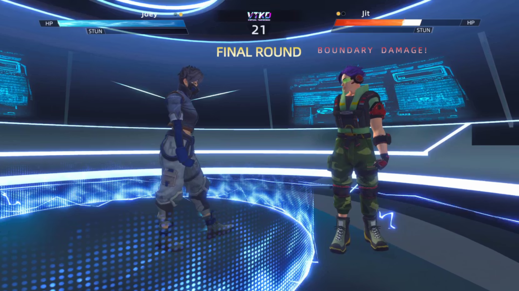 A function that can be toggled in the settings, the boundary damage is an in-game feature where the boundary will start shrinking if neither player lands a hit nor block an attack after 3 seconds. It will continue to shrink until it reaches a minimum size and will only reset to its original size when one player makes contact with the other.