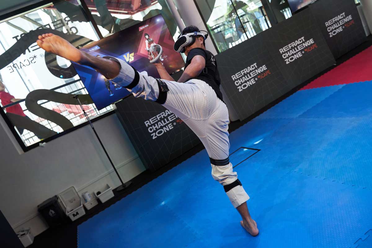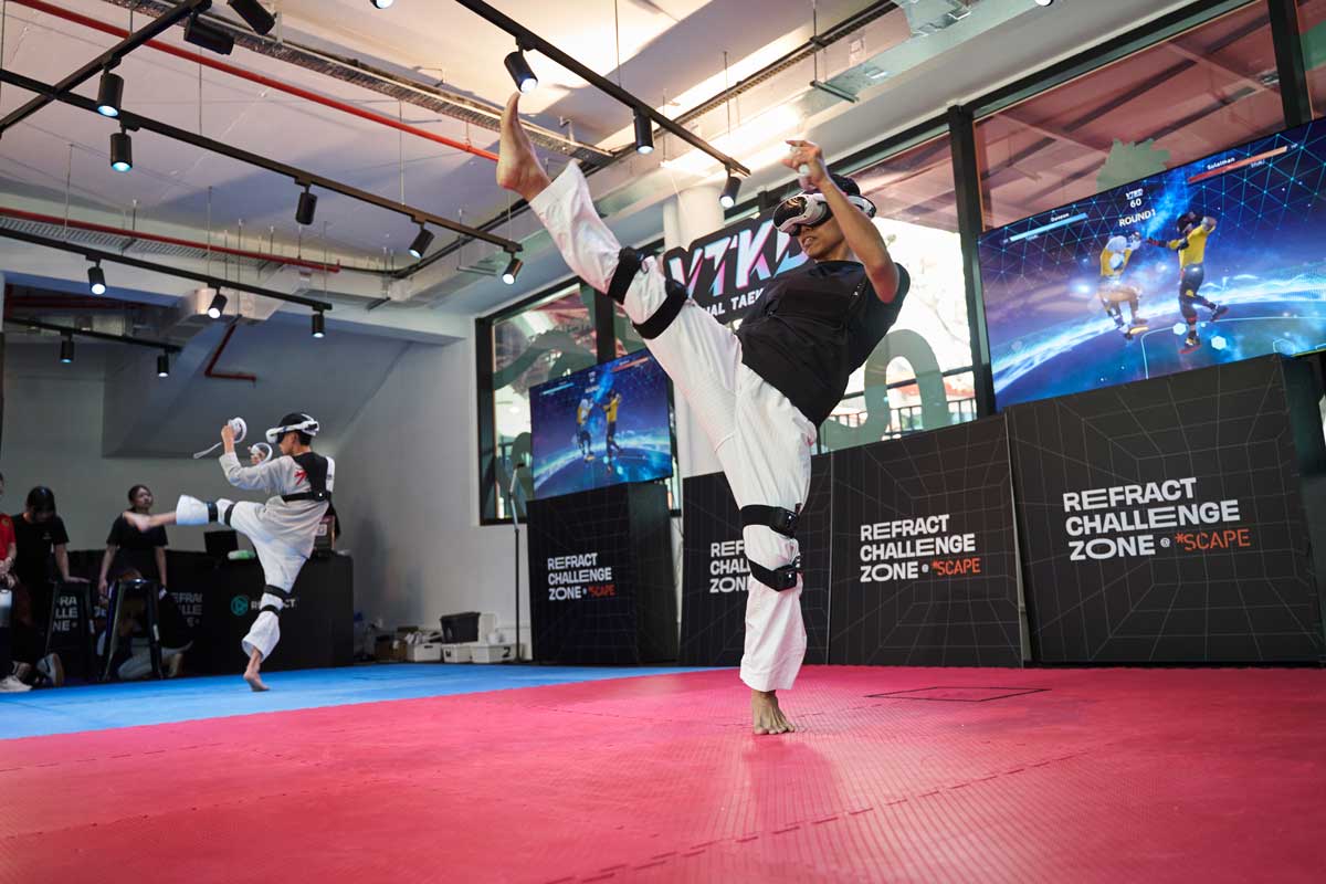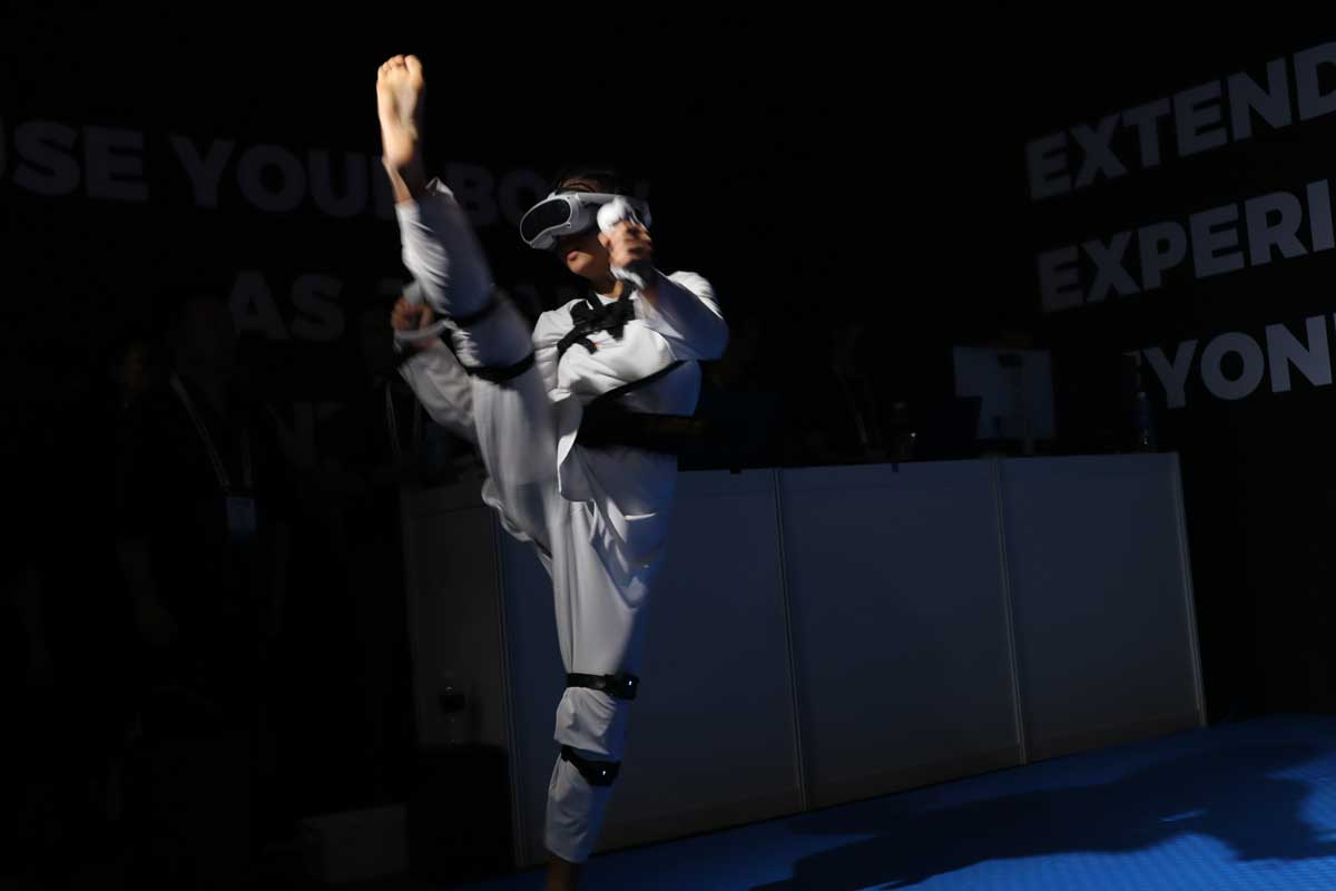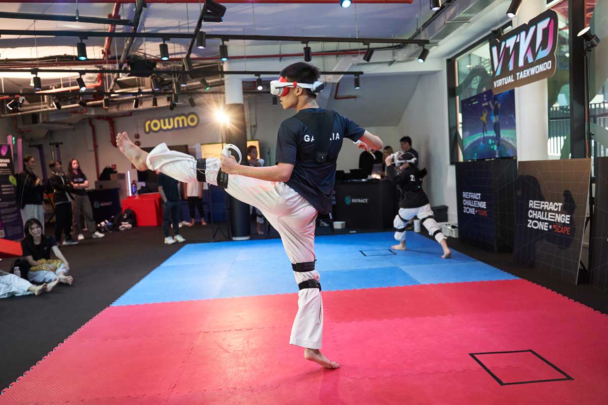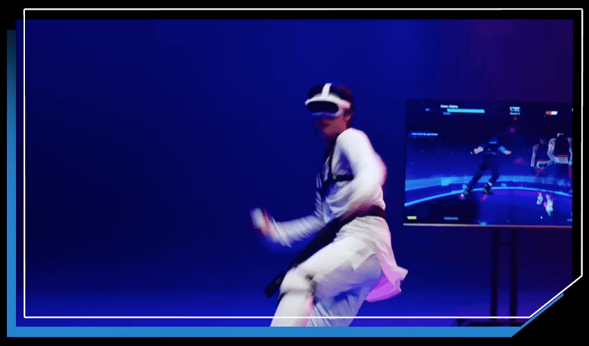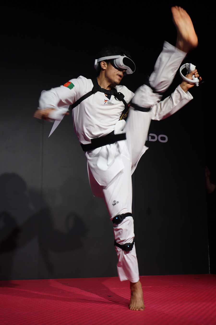 Immerse yourself in the virtual Taekwondo environment with our high-quality VR headset, providing a seamless and responsive experience.