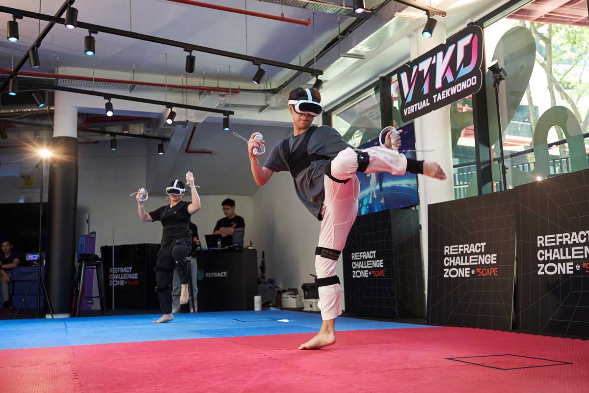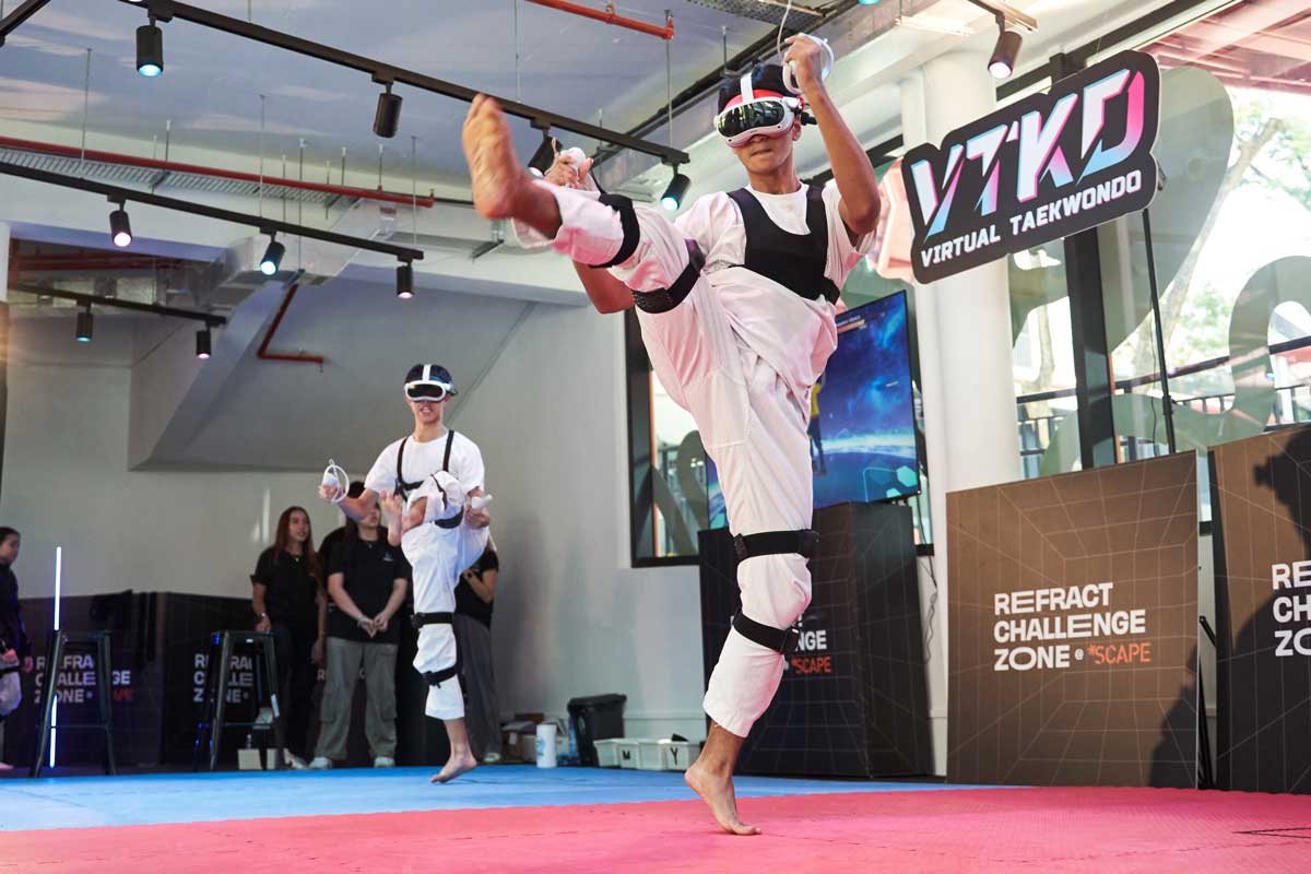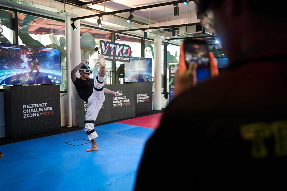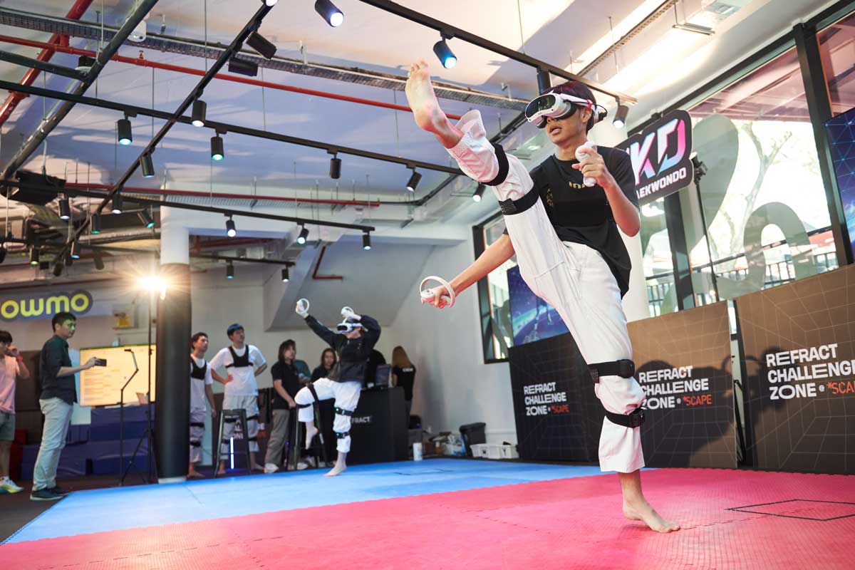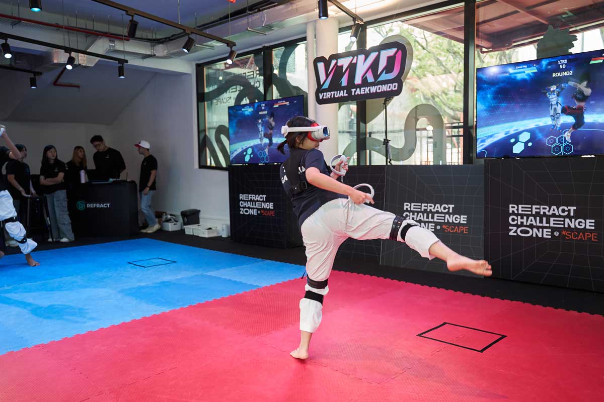 Immerse yourself in the virtual Taekwondo environment with our high-quality VR headset, providing a seamless and responsive experience.